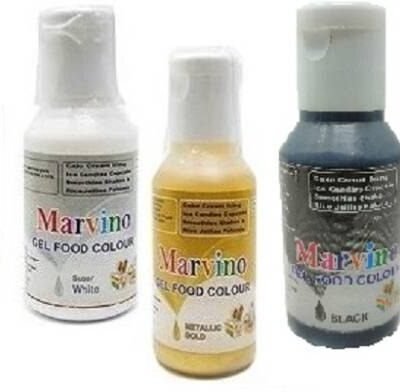 MARVINO Edible Gel Color For Cake Icing Fondant Whip Cream Gold, White, Black (20 Ml).